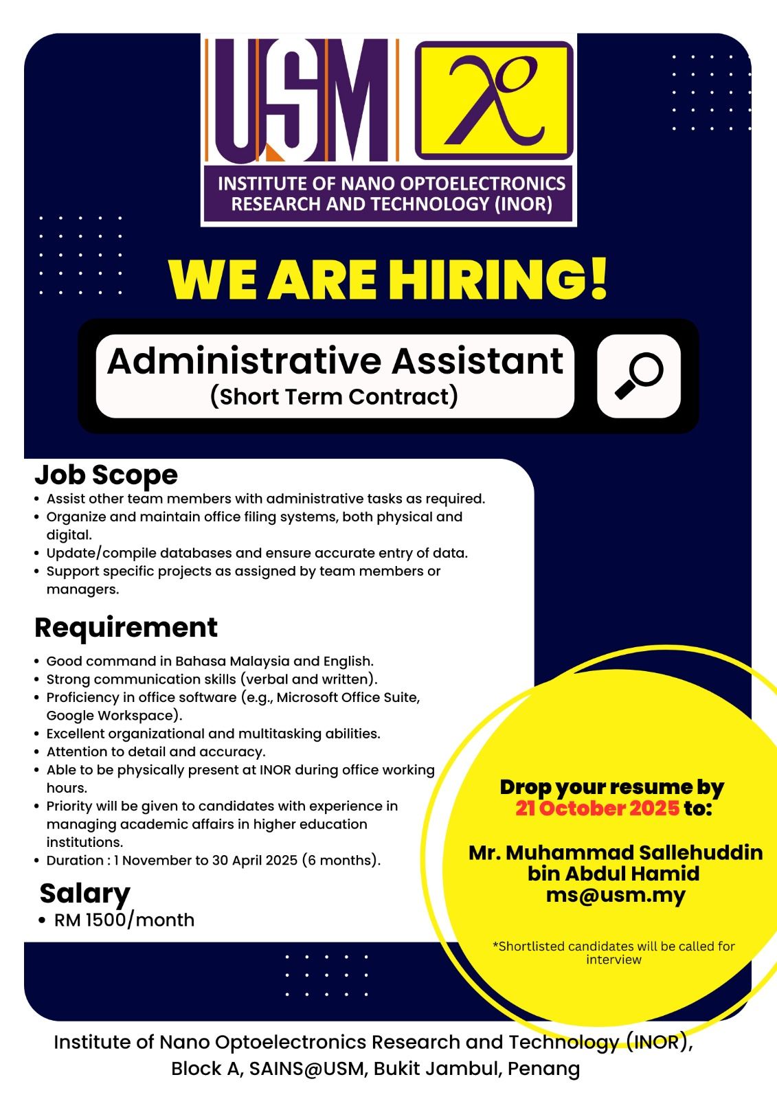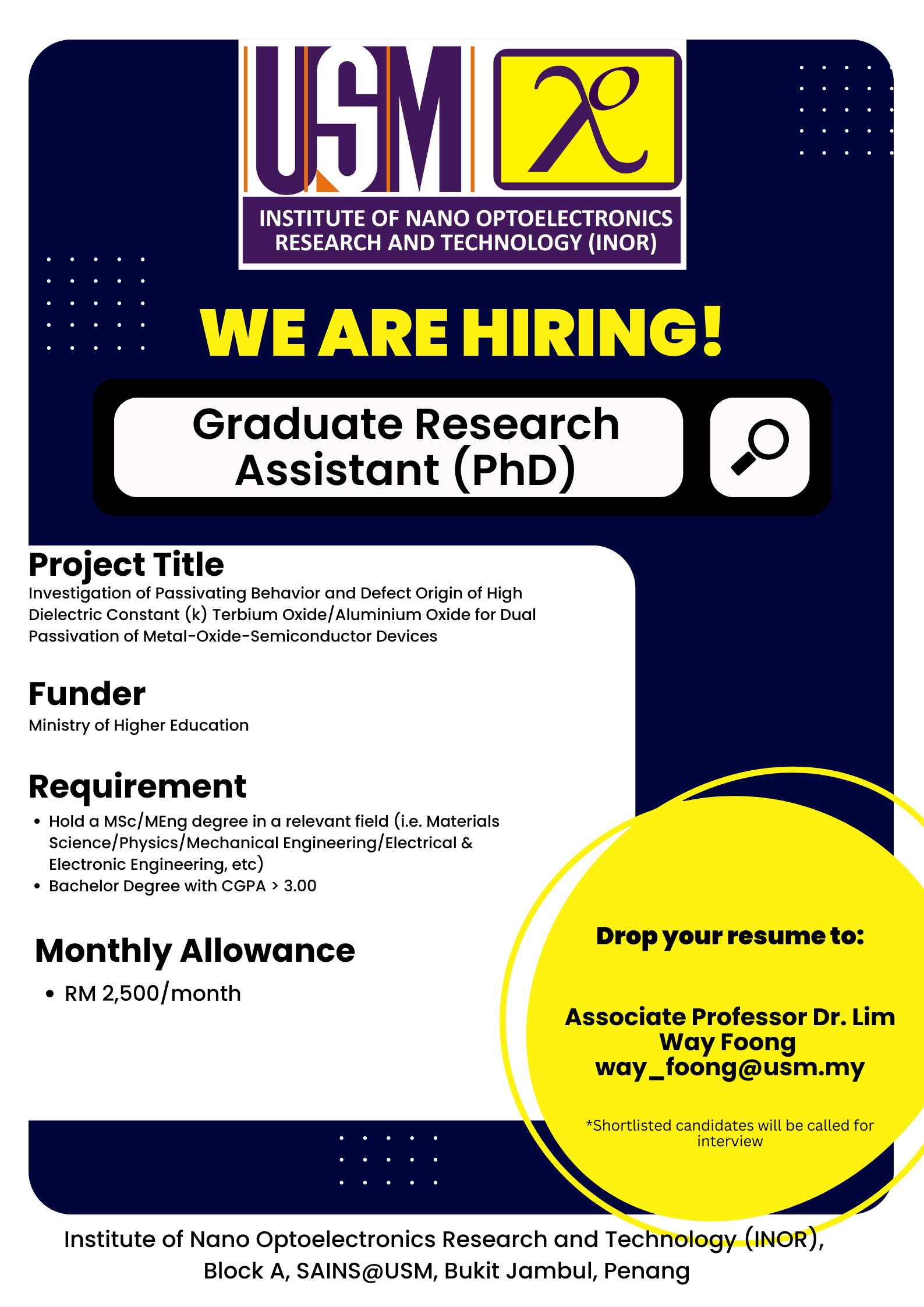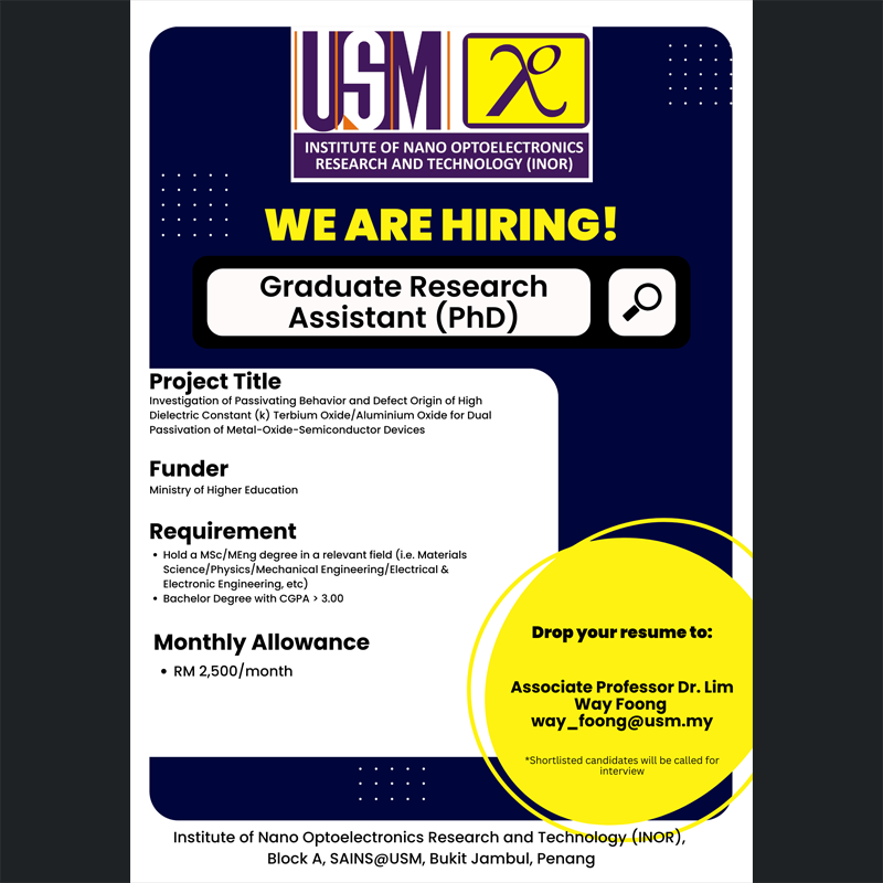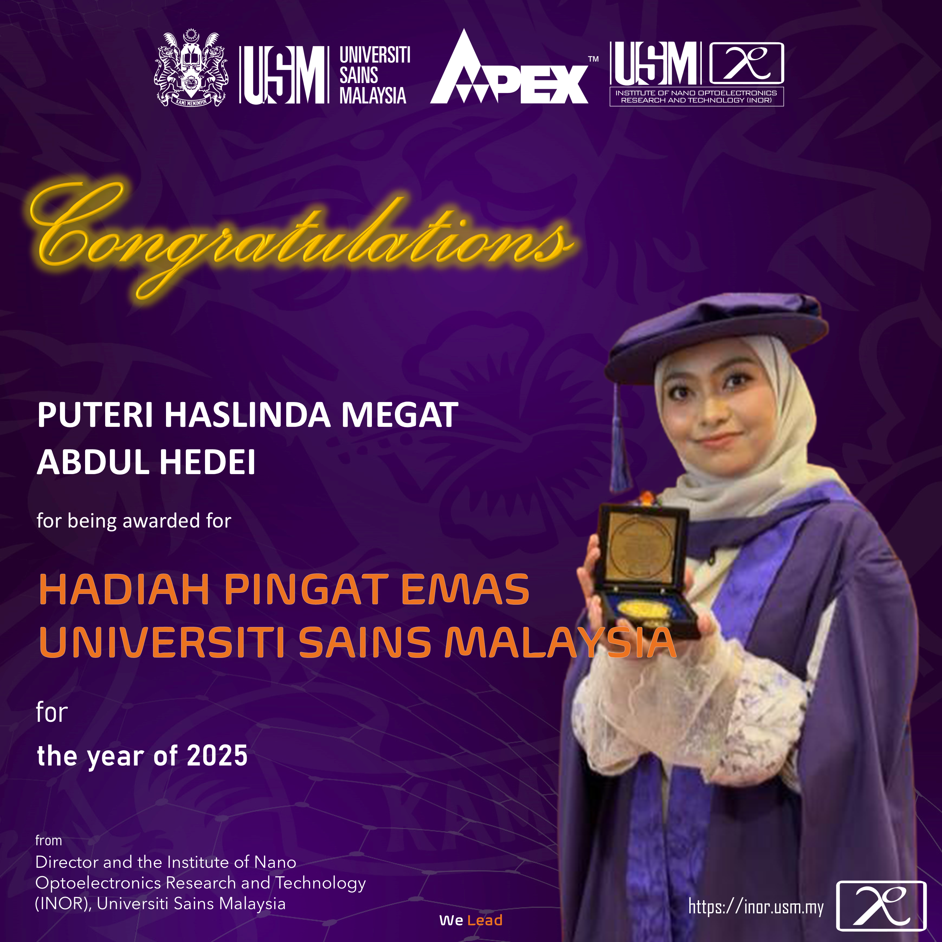 Institute of Nano Optoelectronics Research and Technology (INOR) focuses on research and development (R&D) from the areas of nanoscience, nanomaterials, nanofabrication and nanoengineering that are collectively building intellectual and technological bridges from nanoscale concepts to practical nano optoelectronic devices and systems.