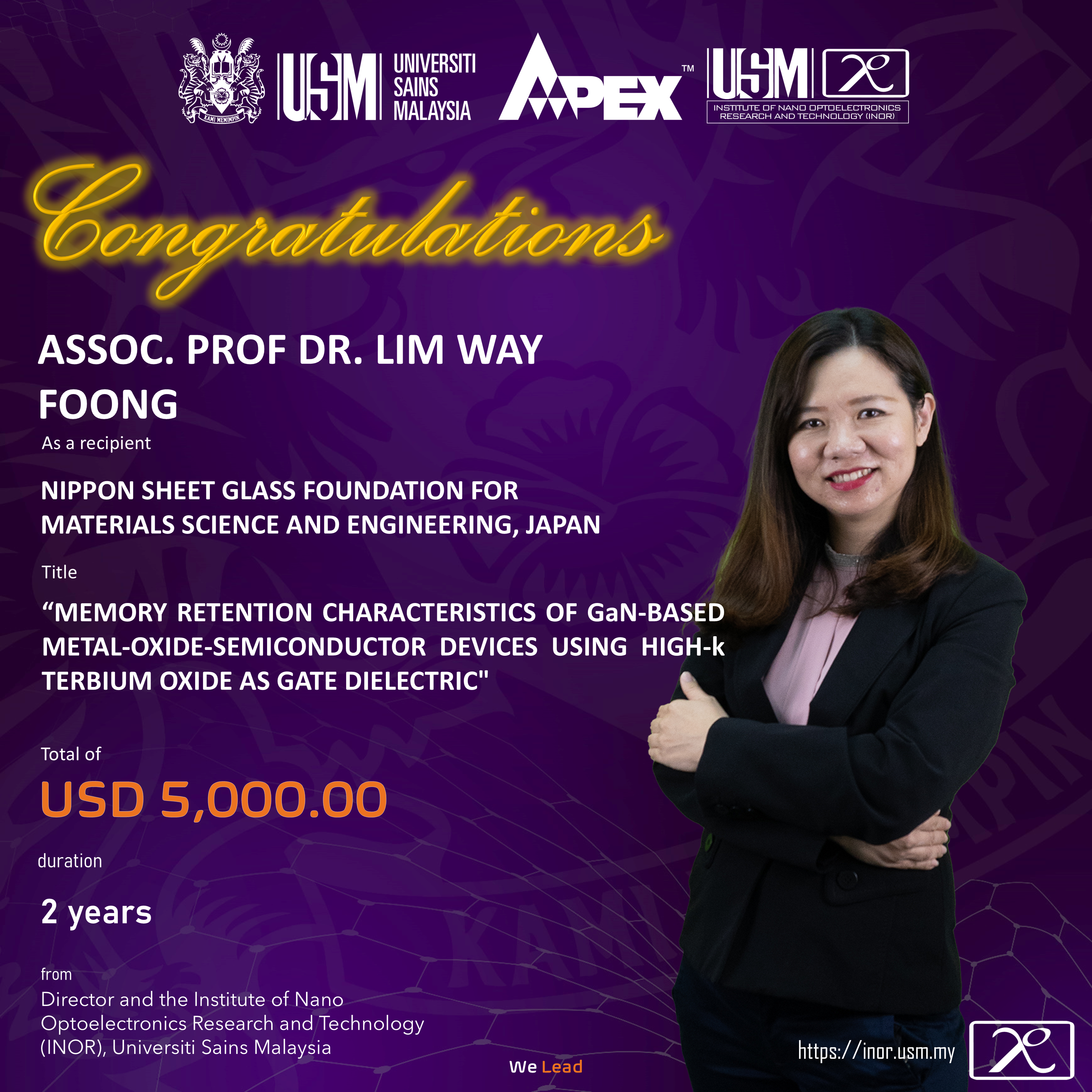 Institute of Nano Optoelectronics Research and Technology (INOR) focuses on research and development (R&D) from the areas of nanoscience, nanomaterials, nanofabrication and nanoengineering that are collectively building intellectual and technological bridges from nanoscale concepts to practical nano optoelectronic devices and systems.